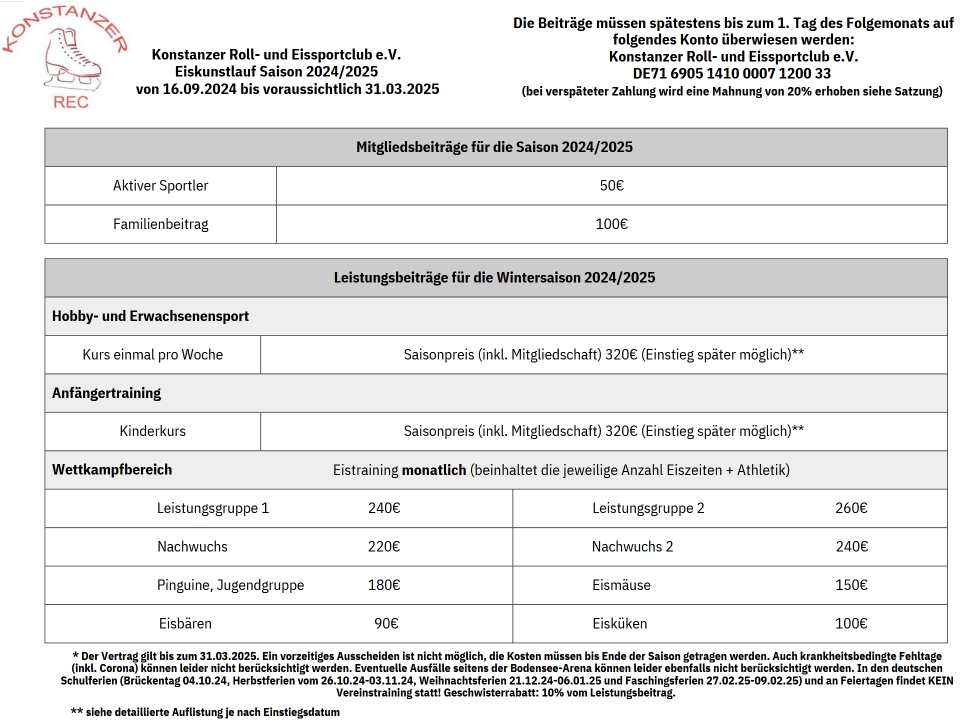 Beiträge ab der Saison 2024/2025
